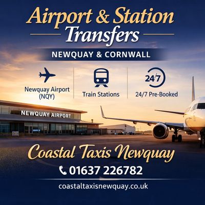 At Coastal Taxis Newquay, we specialise in reliable pre-booked transfers to airports and major train stations across Cornwall and the South West.